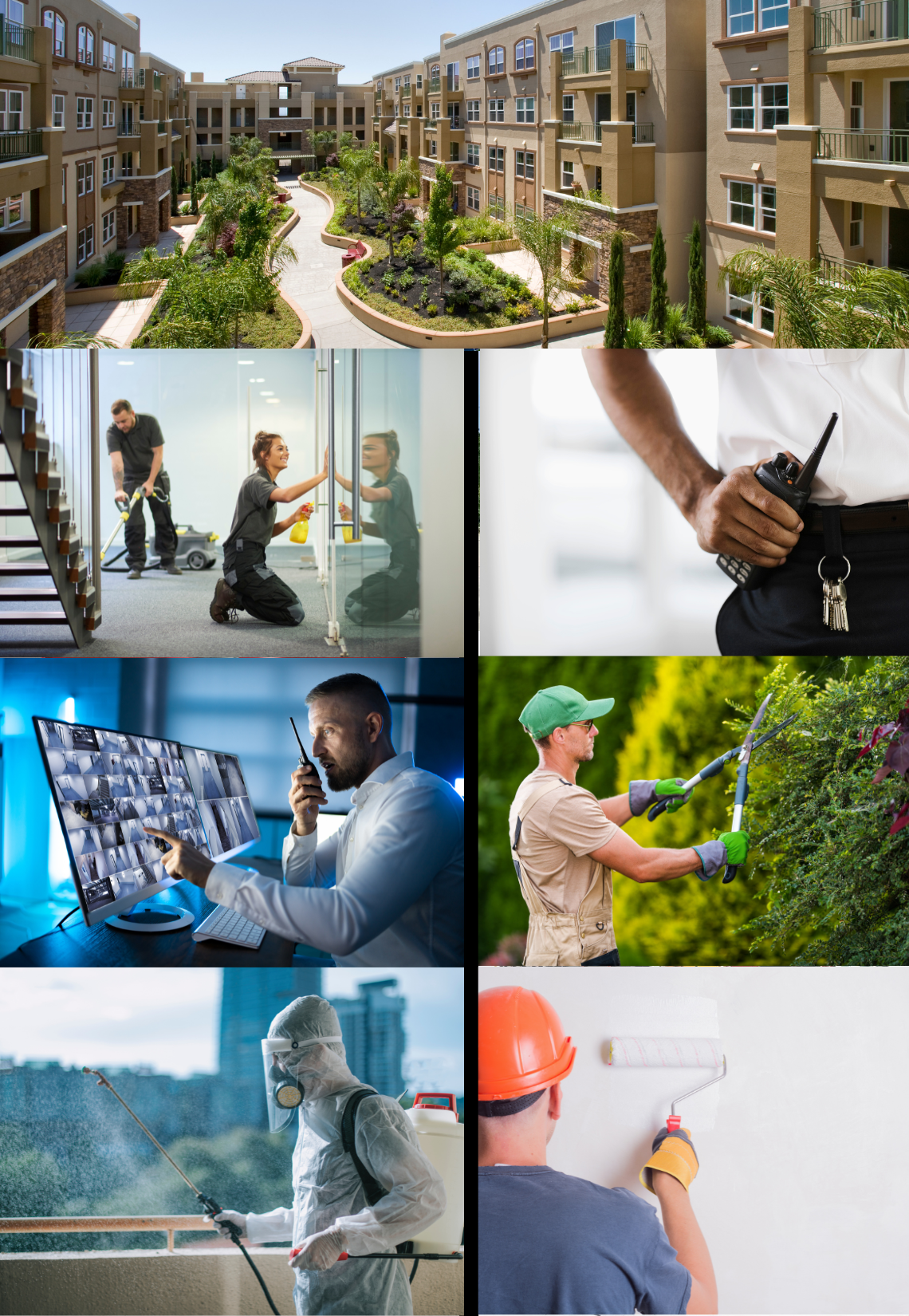 Limpeza e conservação: Limpeza de áreas comuns, como hall de entrada, corredores, áreas de lazer e estacionamento.